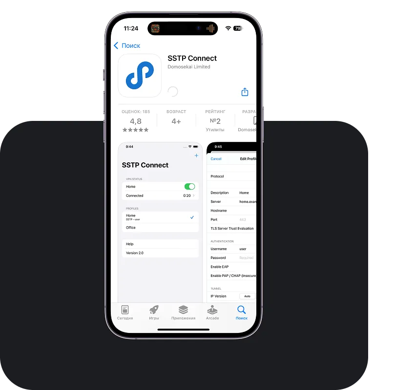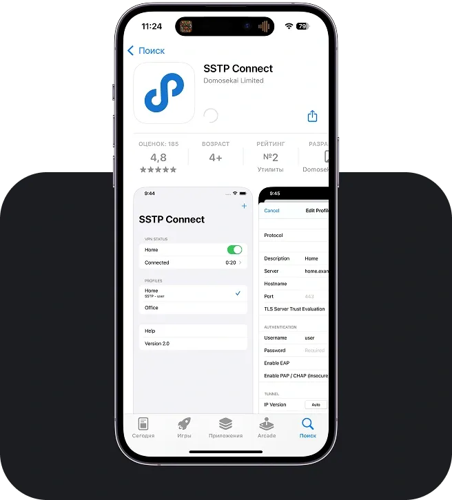 SSTP (Secure Socket Tunneling Protocol) — это VPN-протокол, созданный Microsoft для организации защищённых интернет-соединений. Он работает через порт 443 (HTTPS), что позволяет обходить большинство сетевых ограничений и файрволов.