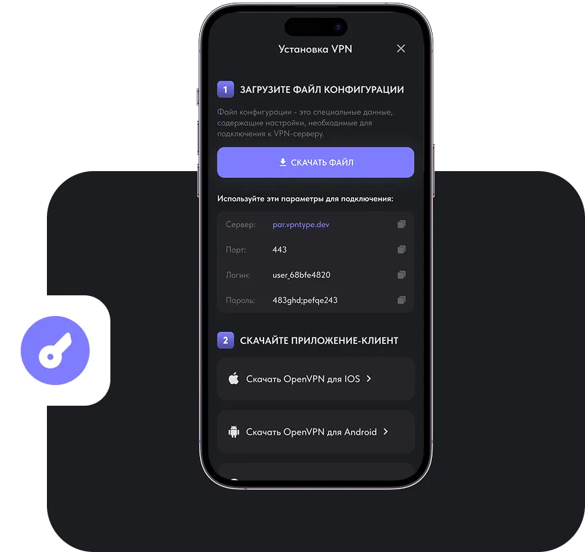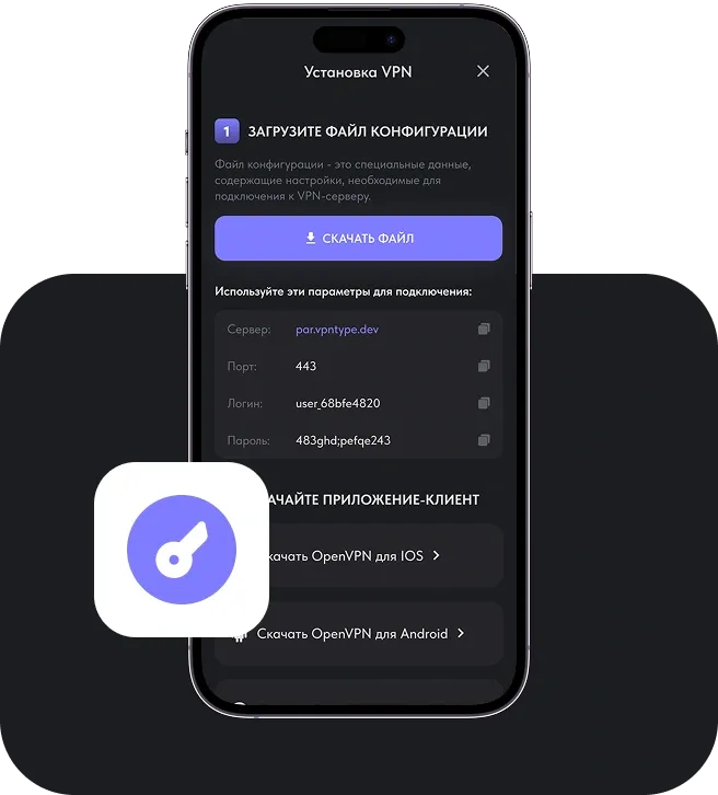 Скопируйте данные сервера и настройте сервер с VPN-доступом через клиенсткое приложение. Гарантируем безопасный и быстрый доступ
